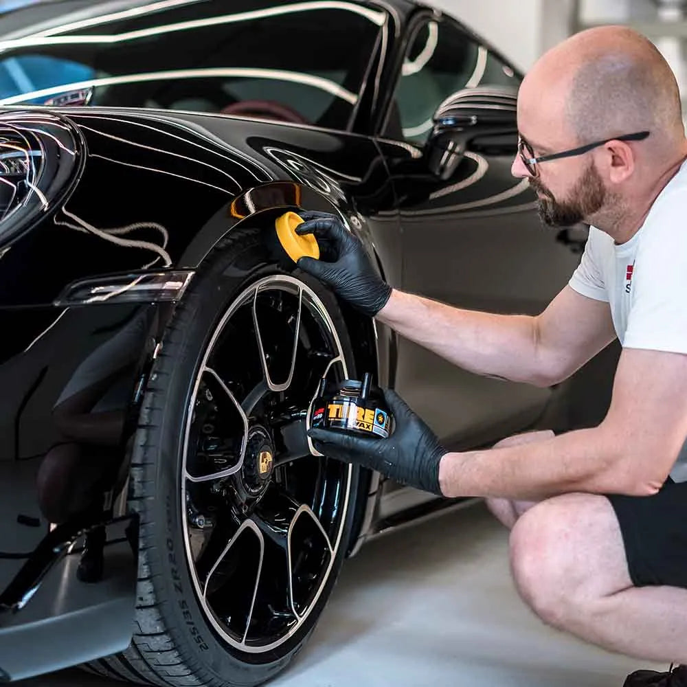Tire Black Wax est une cire de protection développée exclusivement pour les pneus. Cette cire de la célèbre marque japonaise Soft99 dépose un revêtement durable et embellit l'aspect esthétique du pneus avec un noir brillant et intense.